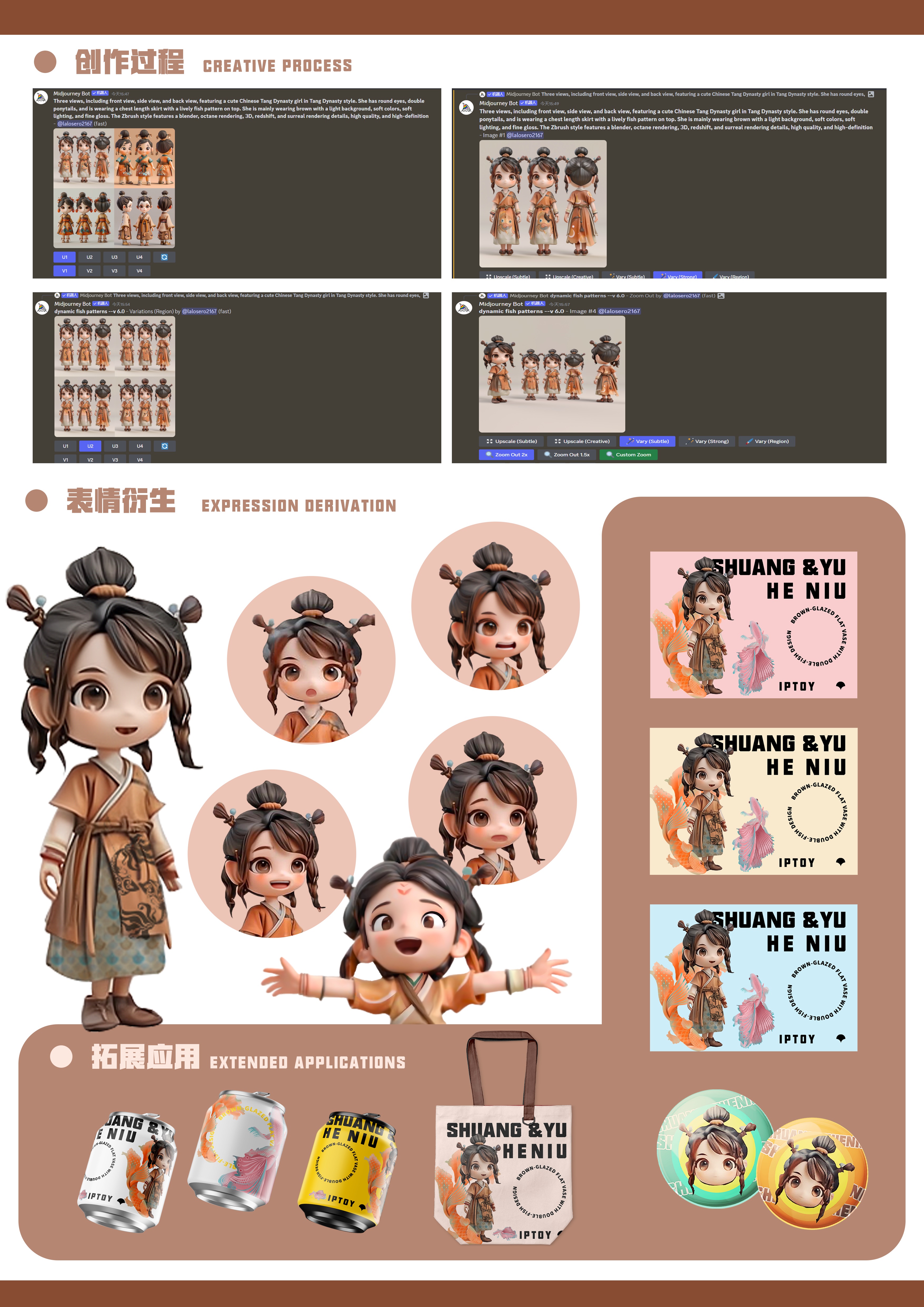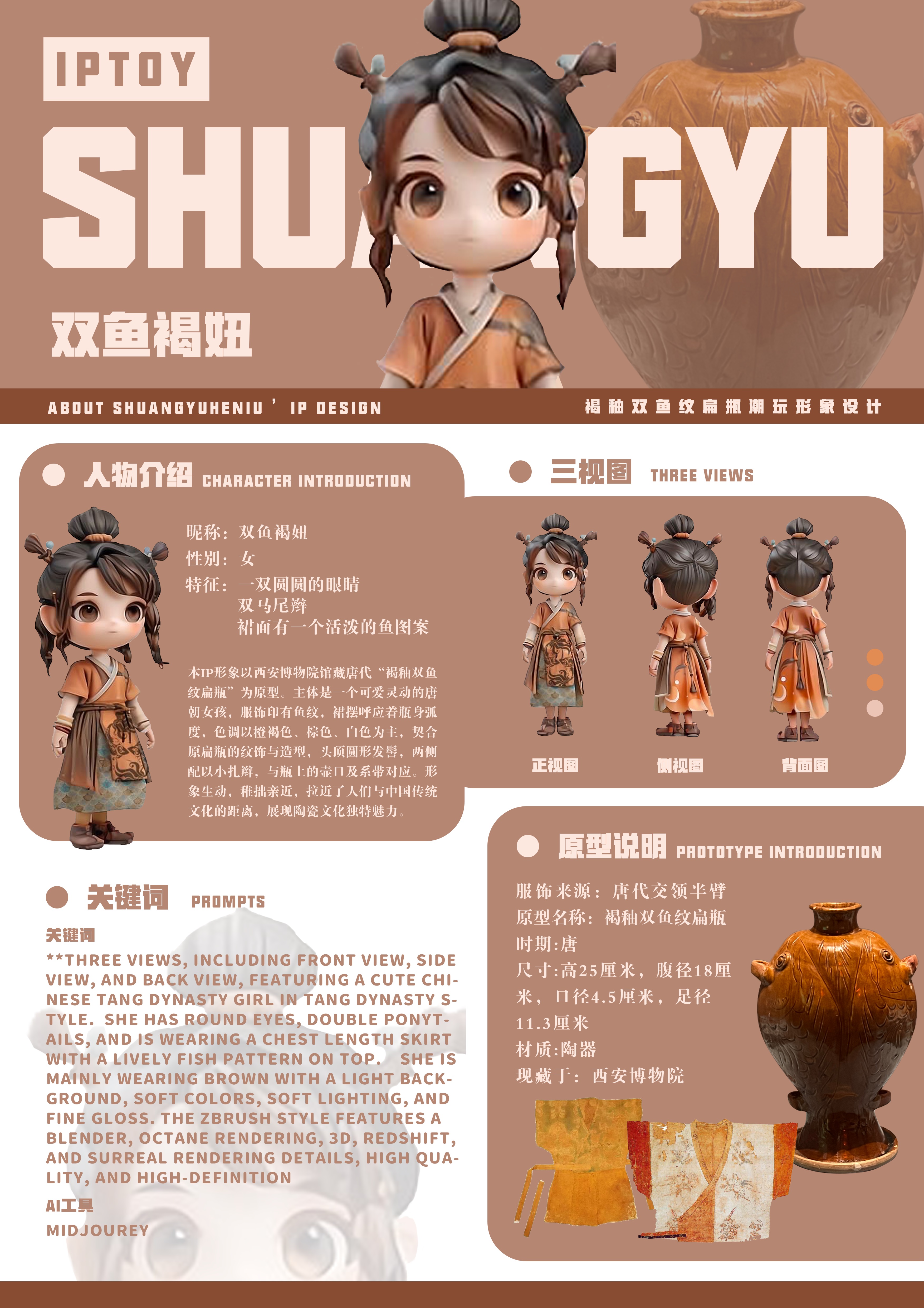 作品展播:双鱼褐妞——褐釉双鱼纹扁瓶潮玩形象设计